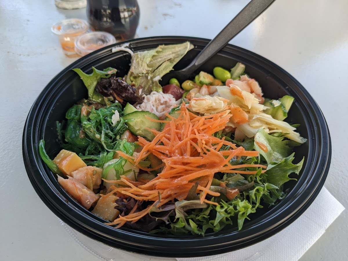 One of the standout items on the menu is their Poke Bowl. Each bowl is crafted with care, allowing you to choose from a variety of fresh fish, such as ahi tuna, salmon, or even tofu for those seeking a plant-based option. The poke is paired with your choice of base, from rice to salad, and topped with an array of flavorful ingredients like avocado, seaweed salad, and pickled vegetables. For those looking for something on the larger side, the Large Poke Salad is a perfect choice. It's packed with all the same fresh toppings, offering a more substantial meal for anyone craving a filling yet light dish.